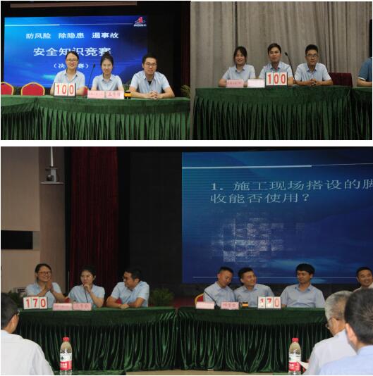 在2019年全國(guó)第18個(gè)“安全生產(chǎn)月”期間,為更好地促進(jìn)集團(tuán)公司廣大職工深入學(xué)習(xí)掌握行業(yè)安全生產(chǎn)相關(guān)法律法規(guī)及標(biāo)準(zhǔn)規(guī)范,認(rèn)真貫徹落實(shí)“安全第一、預(yù)防為主、綜合治理”方針,強(qiáng)化“安全為天 生命至上”理念,6月12日下午,在集團(tuán)公司三樓會(huì)議室隆重舉行“防風(fēng)險(xiǎn)、除隱患、遏事故”主題安全知識(shí)競(jìng)賽活動(dòng),共25支代表隊(duì)參賽,公司安全生產(chǎn)總監(jiān)曹建,總經(jīng)理助理、工會(huì)副主席蒯家江帶隊(duì)參賽。