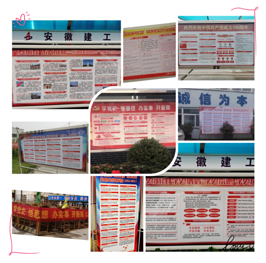 企業(yè)黨建        為慶祝中國共產(chǎn)黨建黨成立100周年,鞏固“不忘初心、牢記使命”主題教育成果,引導(dǎo)廣大職工緊緊圍繞學(xué)懂弄通做實黨的創(chuàng)新理論,做到學(xué)史明理、學(xué)史增信、學(xué)史崇德、學(xué)史力行,分公司黨支部號召各項目部開展“制展版 學(xué)黨史”活動。